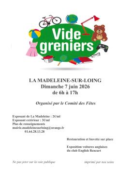 Le Comité des fêtes organise son traditionnel Vide-Grenier le dimanche 7 juin 2026 de 6h à 17h.