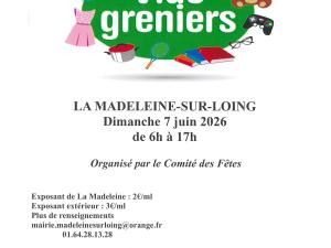 Vie municipale Vide Grenier Le Comité des fêtes organise son traditionnel Vide-Grenier le dimanche 7 juin 2026 de 6h à 17h. 07 Juin 2026 Time: 06h - 17h Mairie 01 64 28 13 28 Courriel COMITE MUNICIPAL DES FETES Localiser Choice of plan Précédent Retour à la liste Suivant